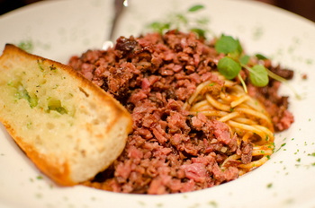 Best served with pickles cut in 4 in length & oven-baked garlic butter French bread baguette (see picture) or a smoked meat sandwich on the side.