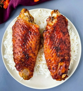 You can serve these BBQ turkey wings among others with buttered rice (see recipe), pilaf rice (see recipe), mashed potatoes or garlic potatoes (my favorites).