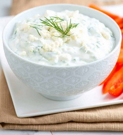 Tzatziki sauce can be frozen in tight-scealed plastic containers. Allways thaw it in the fridge and stir it well before serving. Tzatziki sauce goes perfectly with meats (especially grilled), grilled fish, burgers and sandwiches, pita wraps, potatoes (mashed and baked), and falafel and saussages. It can also be used as a salad and vegetable dressing or as a dip for chips and crackers. In short, your imagination is the only limit. Tzatziki sauce can help reduce appetite, regulate hunger hormones and increase metabolism. |