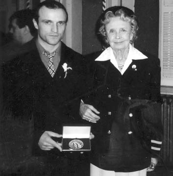 Tânărul a fost medaliat în urma unei actiuni de curaj petrecute în urmă cu doi ani când a sărit în ajutorul unei femei atacate de agresori înarmati. Glontul tras asupra lui a trecut putin pe lângă coloana vertebrală si din fericire acesta a scăpat doar cu leziuni usoare.